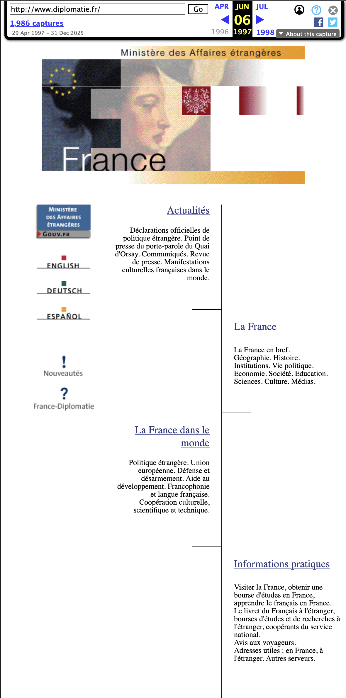 Corpus : sites web de MAE archivés par Internet Archive (Wayback